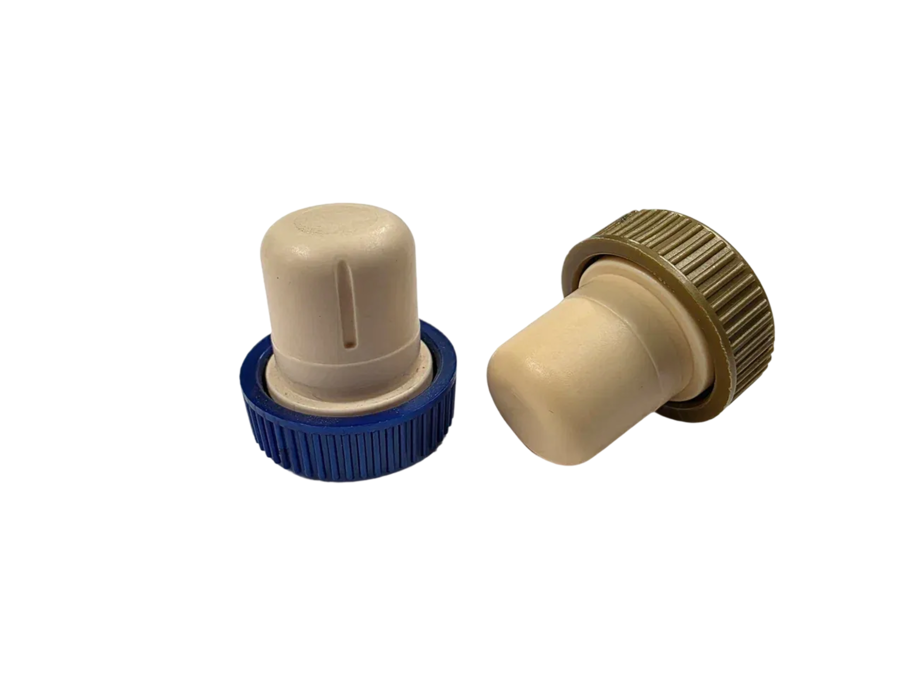 Верх и черенок полимерной Т-образной пробки раздельные, что обеспечивает различные комбинации размеров и цветов и позволяет найти оптимальное решение в дизайне конечного продукта.